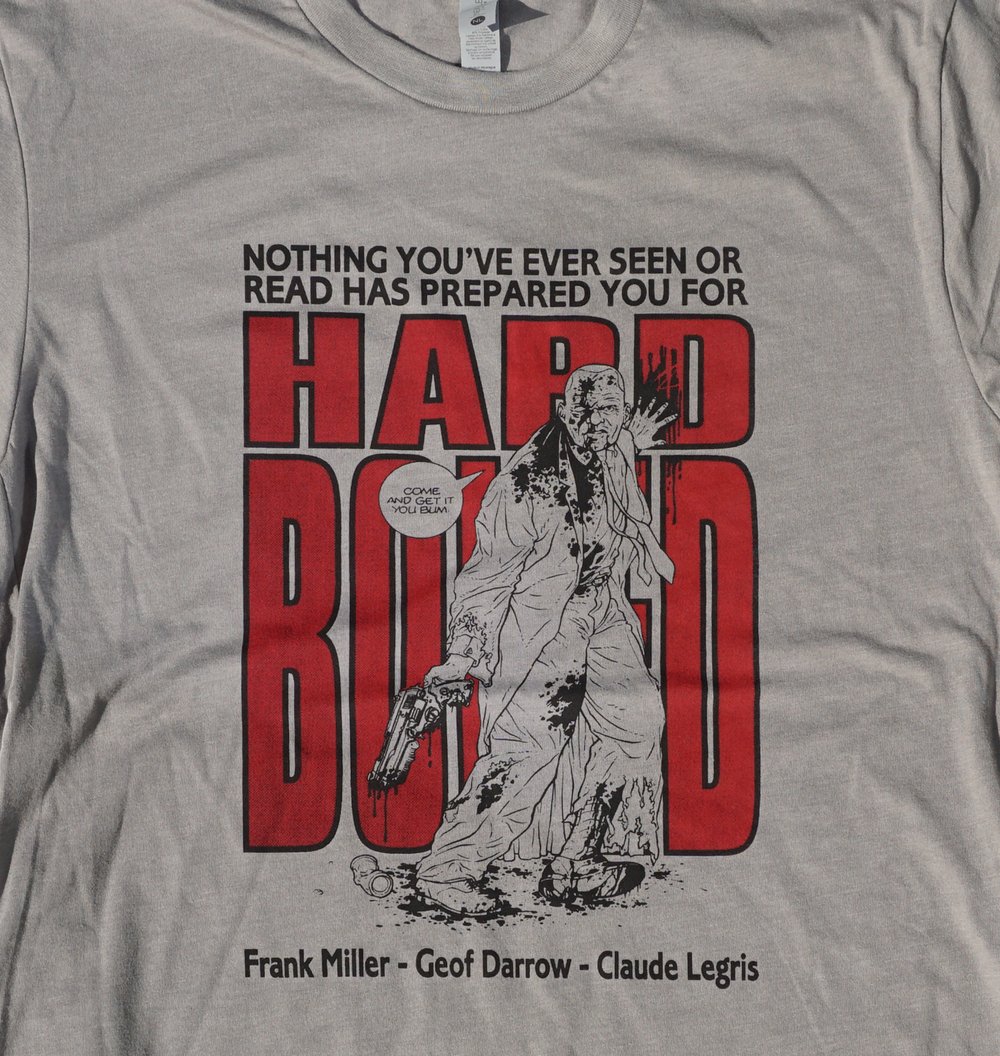 Screen printed on 60% ring-spun cotton and 40% polyester blend t-shirts using water-based inks for soft feel.